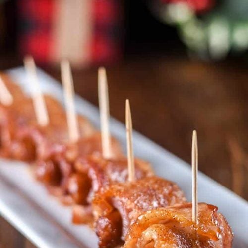 These Bacon Wrapped Smokies are a perfect appetizer for watching football. So whether you are watching your favorite college or professional football playoff or the Superbowl in February (which is being played in our hometown this year), these smoky, spicy, and sweet bite-sized appetizers are the perfect game day grub for your game day party.