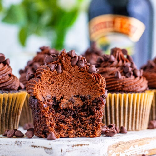 You’ll often see it used in frosting with Guinness cupcakes, but in this recipe, we use the Irish cream in chocolate cupcakes and chocolate frosting!