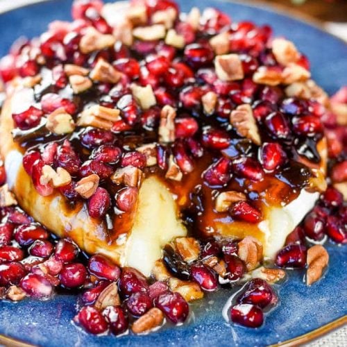 Inspiration for this hit me at the grocery store. I knew I wanted a Brie Cheese appetizer but I was having trouble deciding on how to top it. I knew I wanted Pomegranates on top because they remind of Christmas and the holidays. They are so festive looking.