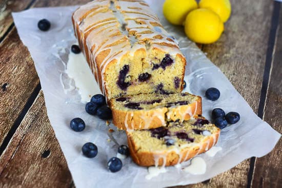 This Glazed Lemon Blueberry Pound Cake is a moist, luscious, buttery, lemon pound cake made with beautiful fresh blueberries throughout and glazed with a sweet, tangy lemon icing. It is similar to the Iced Lemon Pound Cake found at Starbucks but with the addition of fresh blueberries.