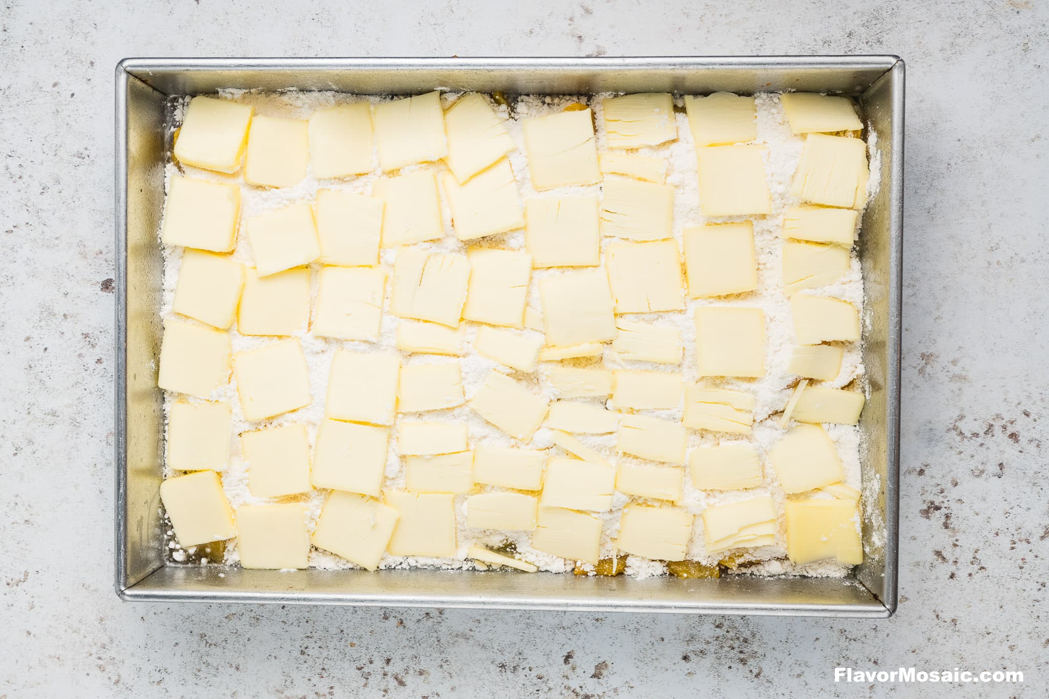 Slice that butter thinly so you can cover all the dry mix-no one wants powdery patches.