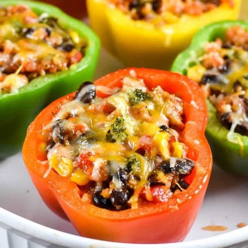 With these Vegetarian Mexican Stuffed Peppers being gluten-free and lower in carbs, they fit into almost any meal plan.