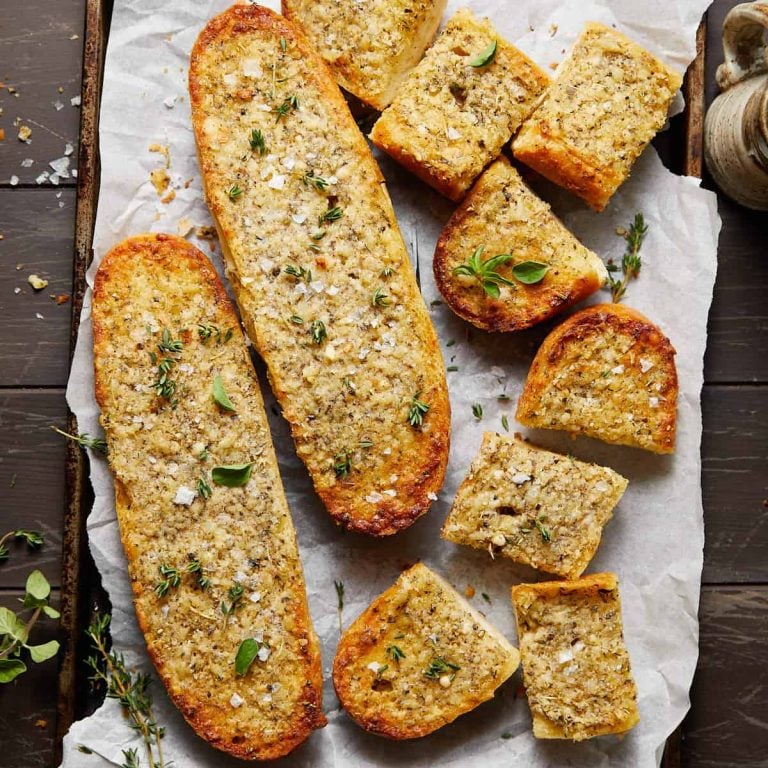Made with Pesto Butter, this Pesto garlic bread is deliciously flavorful, and perfect with chicken parmesan or any Italian dinner.